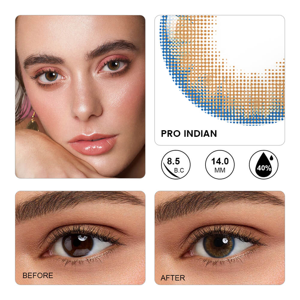 With high-impact color and ultra-concentrated pigment, the Indian Brown contacts deliver a striking and complete eye color transformation. The vibrant hues ensure that your eyes leave a lasting impression, making them an excellent choice for anyone looking to make a bold statement.